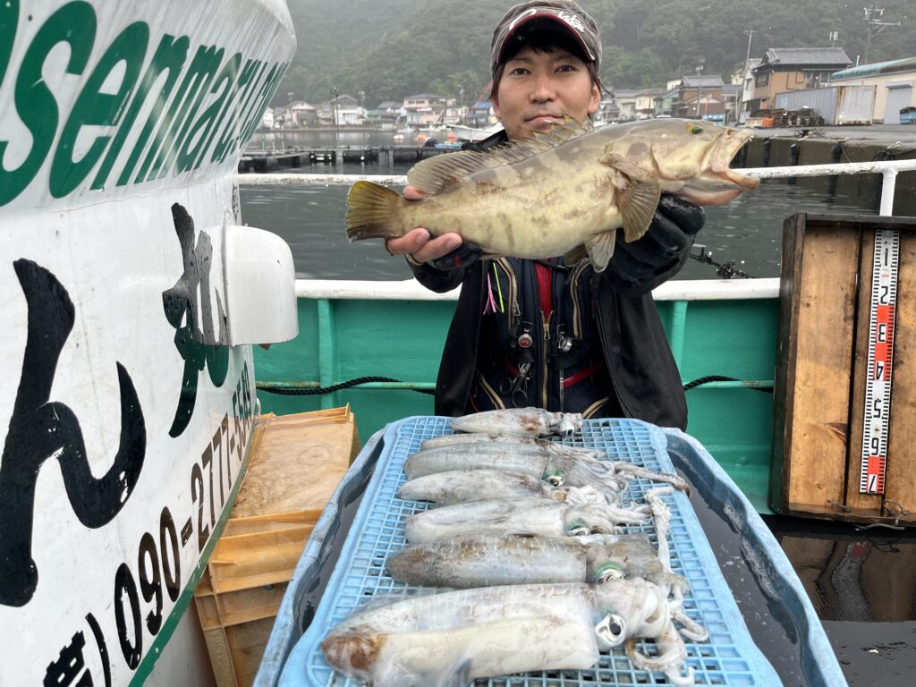 アオリイカ 17〜27cm 7杯 クエ 41cm 1尾 ヤエン仕掛け あじ販売