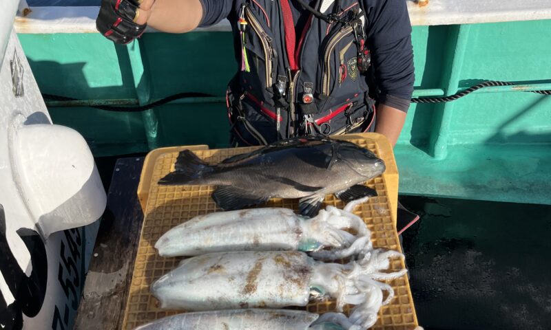 アオリイカ 23〜30cm 4杯 グレ 34 cm 1尾 ヤエン仕掛け