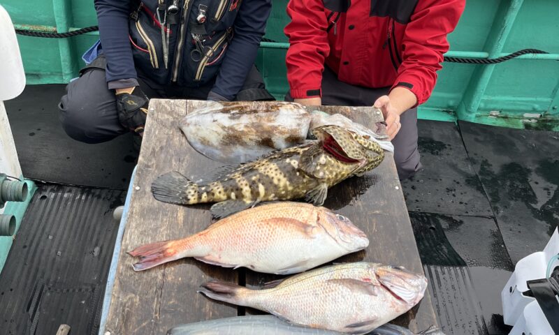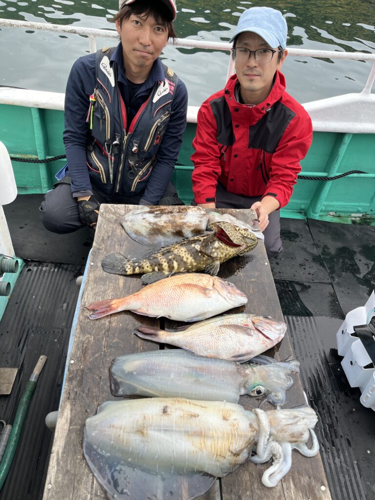アオリイカ 30〜35cm 3杯 ヤイトハタ 47cm 47cm 1尾 マダイ 36〜42cm 2尾