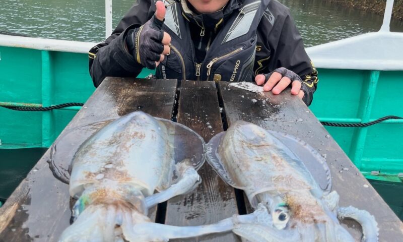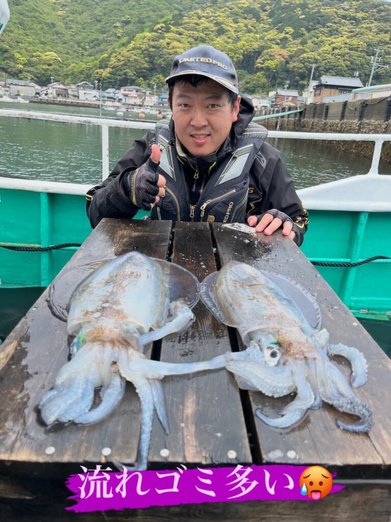アオリイカ 33〜35cm 2杯 ヤエン仕掛け 流れゴミ多い