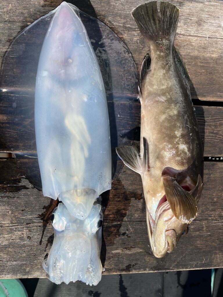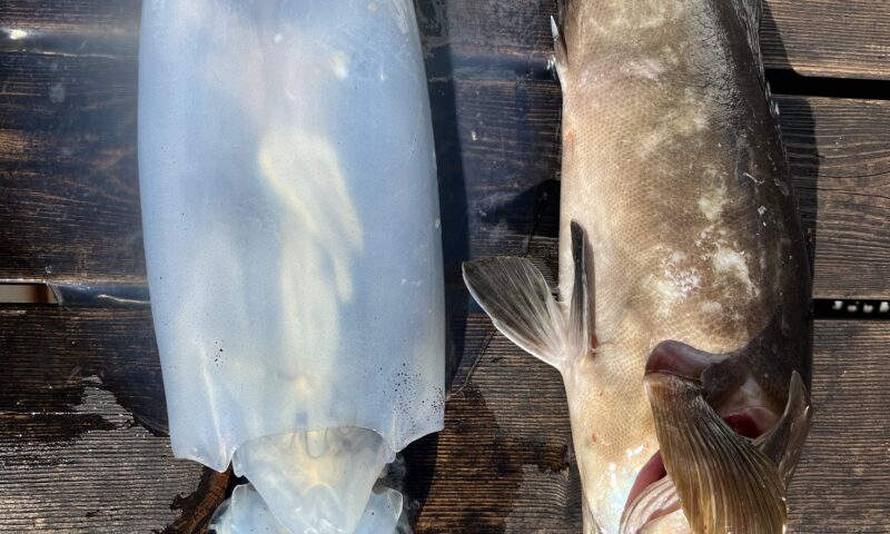 アオリイカ 35cm 1杯 クエ 44cm 1尾