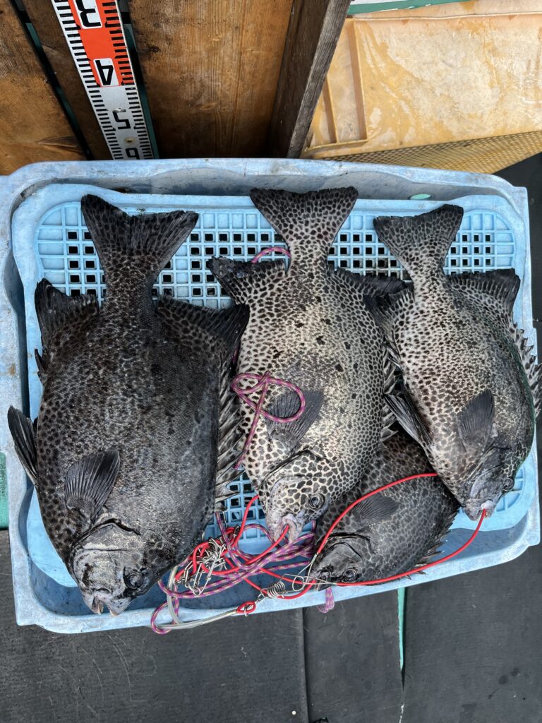 グレ 40〜42cm 2尾 オオモンハタ 36cm 1尾 オジサン 43cm 1尾 シマアジ 28〜29cm 2尾 ブダイ 35〜42cm 2尾