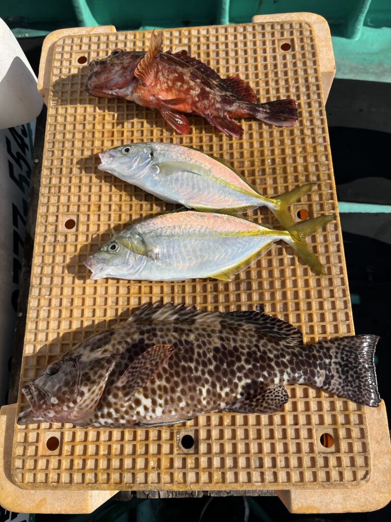 オオモンハタ 39cm 1尾 シマアジ 27〜28cm 2尾 カサゴ 29cm 1尾