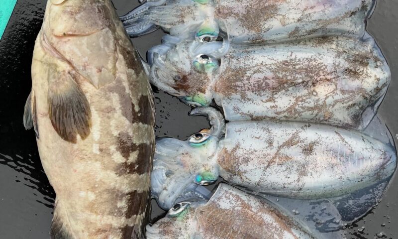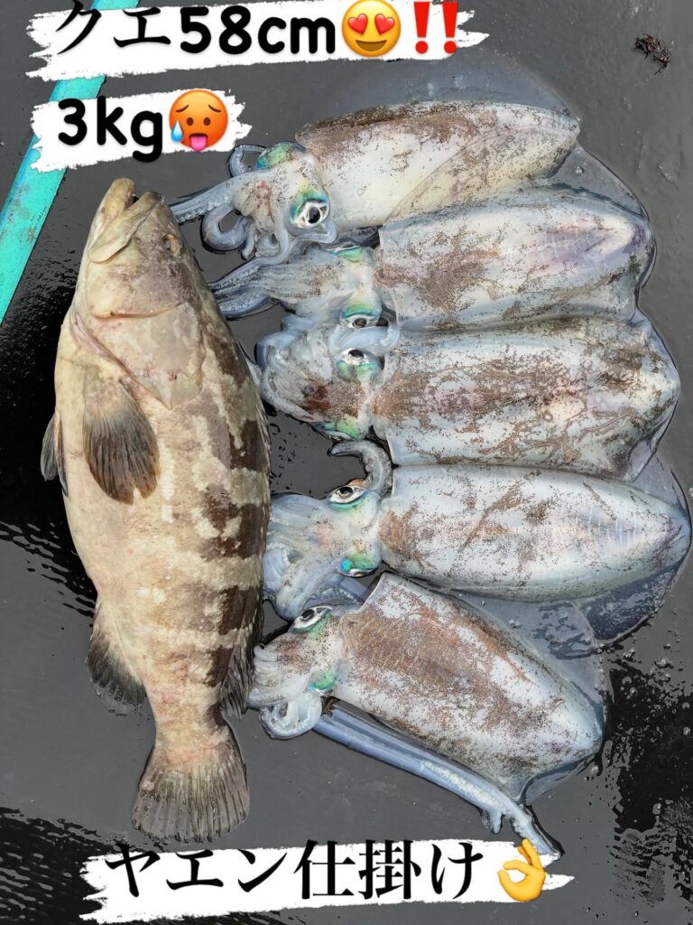 クエ 58cm 1尾 3kg アオリイカ 32〜34cm 5杯