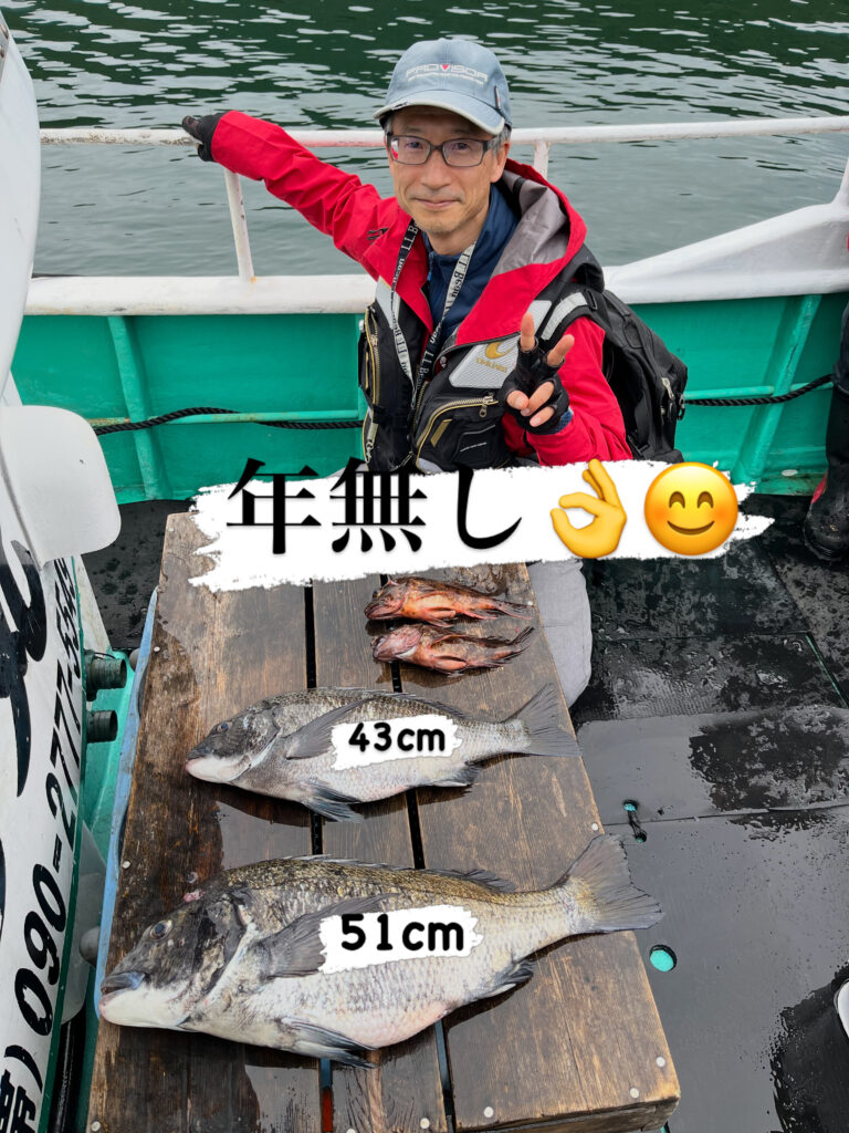 クロダイ 47cm 1尾 カワハギ 27cm 1尾 グレ 31cm 1尾