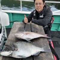 上野様 グレ 38㎝ 1匹 クロダイ 40㎝ 1匹 水温 17.5度