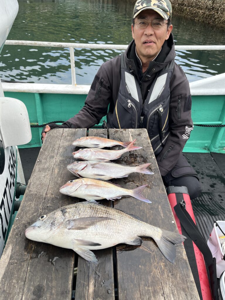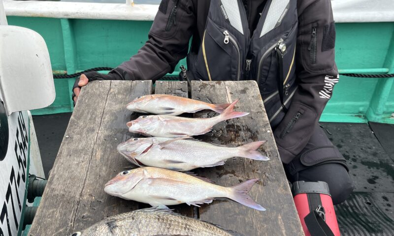マダイ 35〜42cm 6尾 波高い