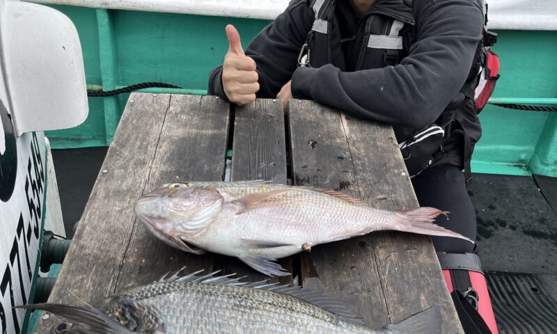 クロダイ 50cm 1尾 マダイ 45cm 1尾 波高い