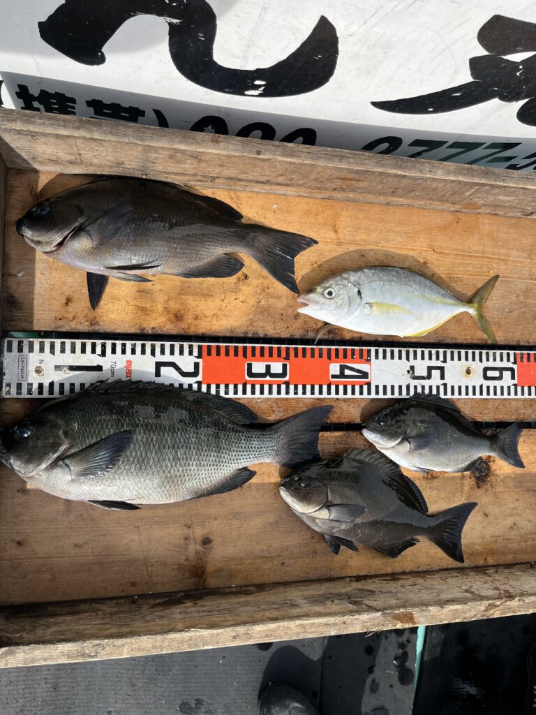 尾長グレ 36〜40cm 2尾 グレ 30〜37cm 7尾 シマアジ 32cm 1尾