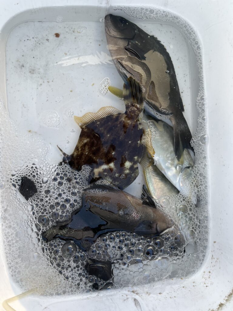 グレ 28〜31cm 3尾 シマアジ 28〜29cm 2尾 カワハギ 24〜25cm 2尾