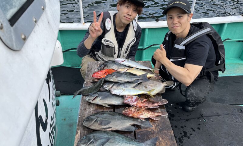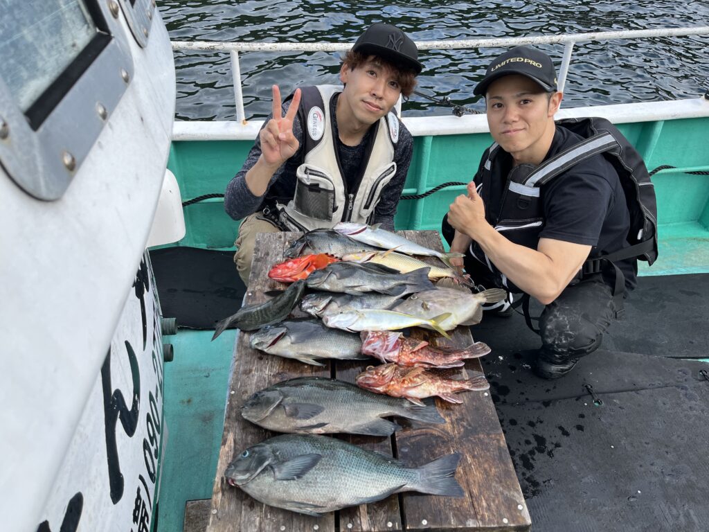 グレ 31〜40cm 7尾 シマアジ 24〜28cm 10尾 アカハタ 37cm 1尾 フエフキダイ 38cm 1尾 ツバス 39cm 1尾 カサゴ 28〜30cm 2尾