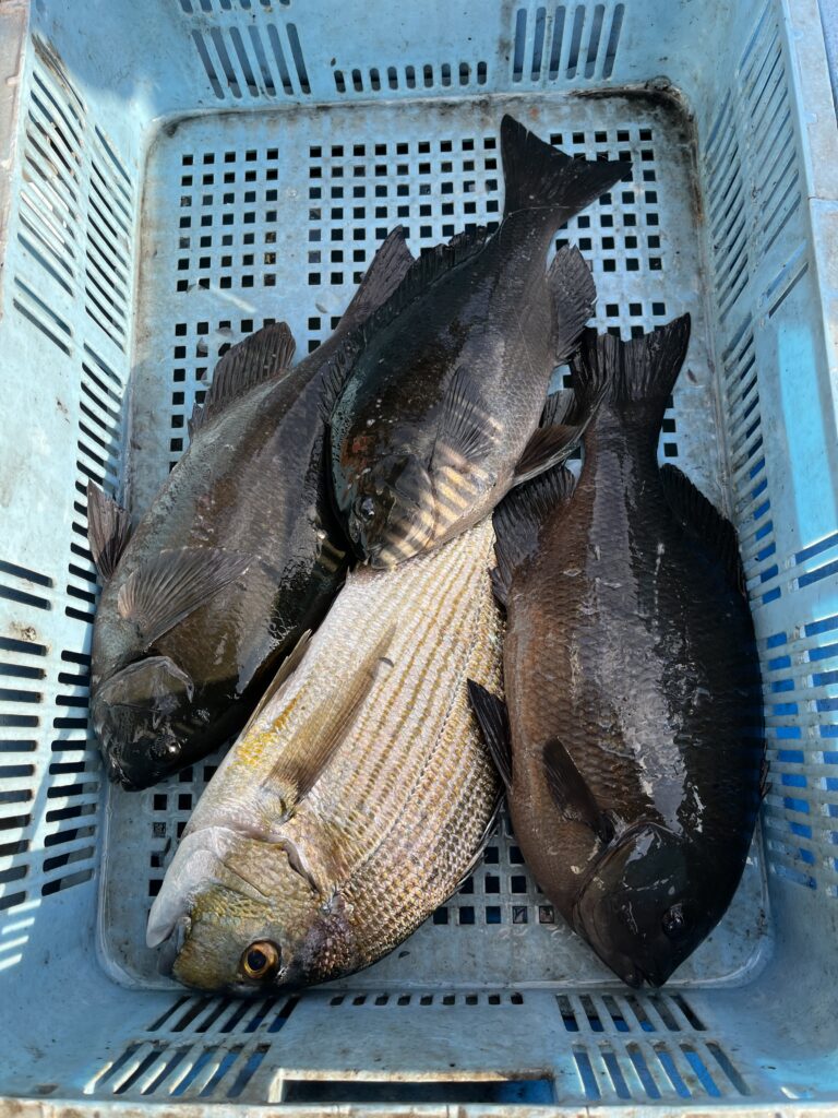 グレ 38〜41cm 3尾 ヘダイ 45cm 1尾 ブダイ3尾放流