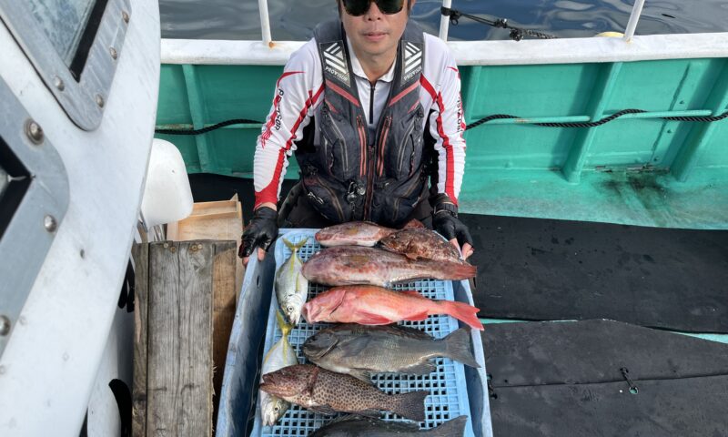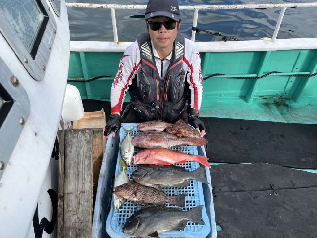 グレ 40〜42cm 2尾 オオモンハタ 36cm 1尾 オジサン 43cm 1尾 シマアジ 28〜29cm 2尾 ブダイ 35〜42cm 2尾