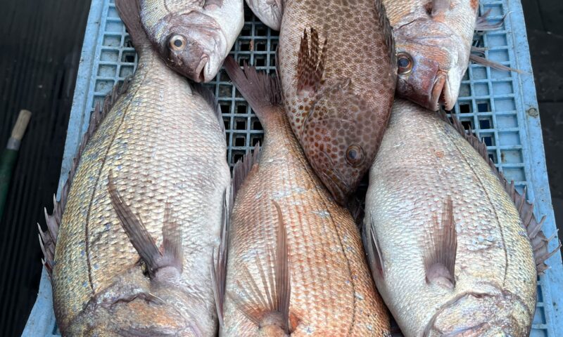 鳥井様 グレ 44㎝ 1匹 クロダイ 42~46㎝ 2匹 アカハタ 38㎝ 1匹 水温17.5度