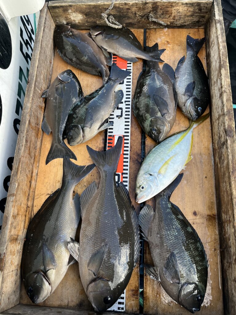 尾長グレ 36〜40cm 2尾 グレ 30〜37cm 7尾 シマアジ 32cm 1尾