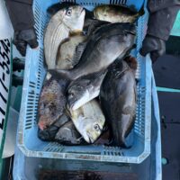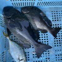 鳥井様 グレ 44㎝ 1匹 クロダイ 42~46㎝ 2匹 アカハタ 38㎝ 1匹 水温17.5度