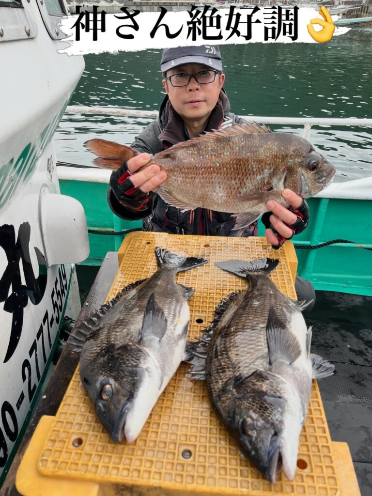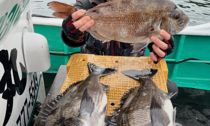 本日お客さん3人全員キャッチ クロダイ 45〜47cm 2尾 マダイ 49cm 1尾