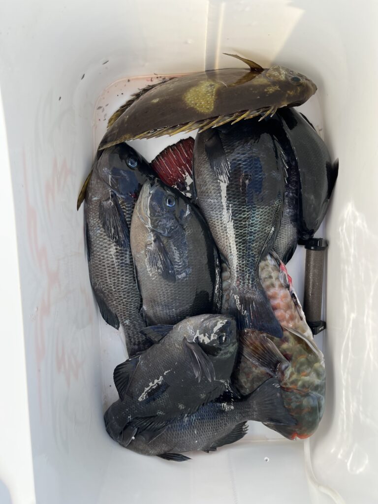 クロダイ 44〜45cm 2尾 アカハタ 35cm 1尾 オオモンハタ 34cm 1尾…