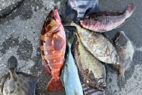 オオモンハタ 39cm 1尾 シマアジ 27〜28cm 2尾 カサゴ 29cm…