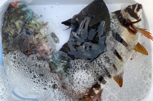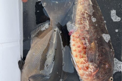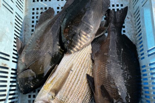 グレ 38〜41cm 3尾 ヘダイ 45cm 1尾 ブダイ3尾放流